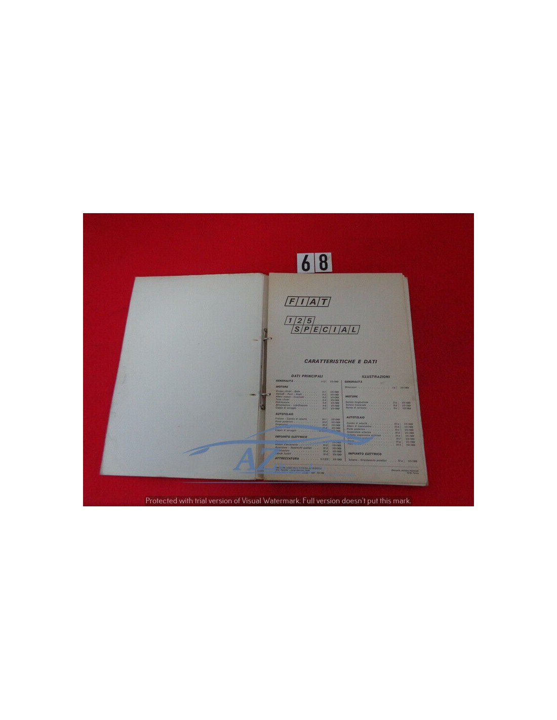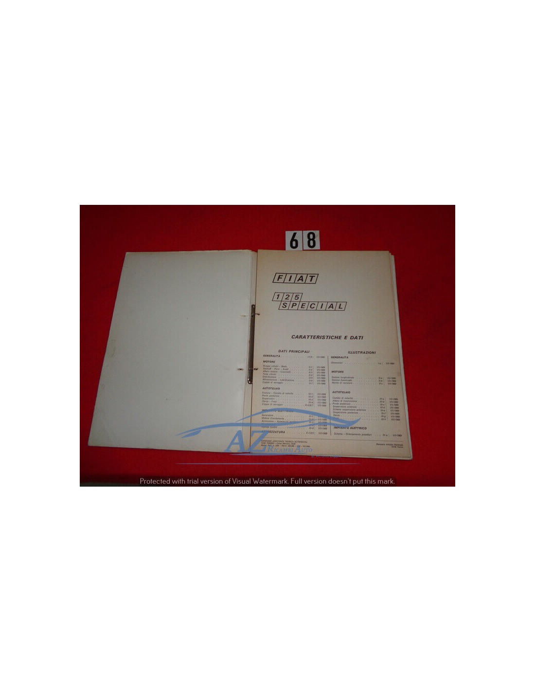 Manuale assistenza tecnica caratteristiche e dati Fiat 125 Special