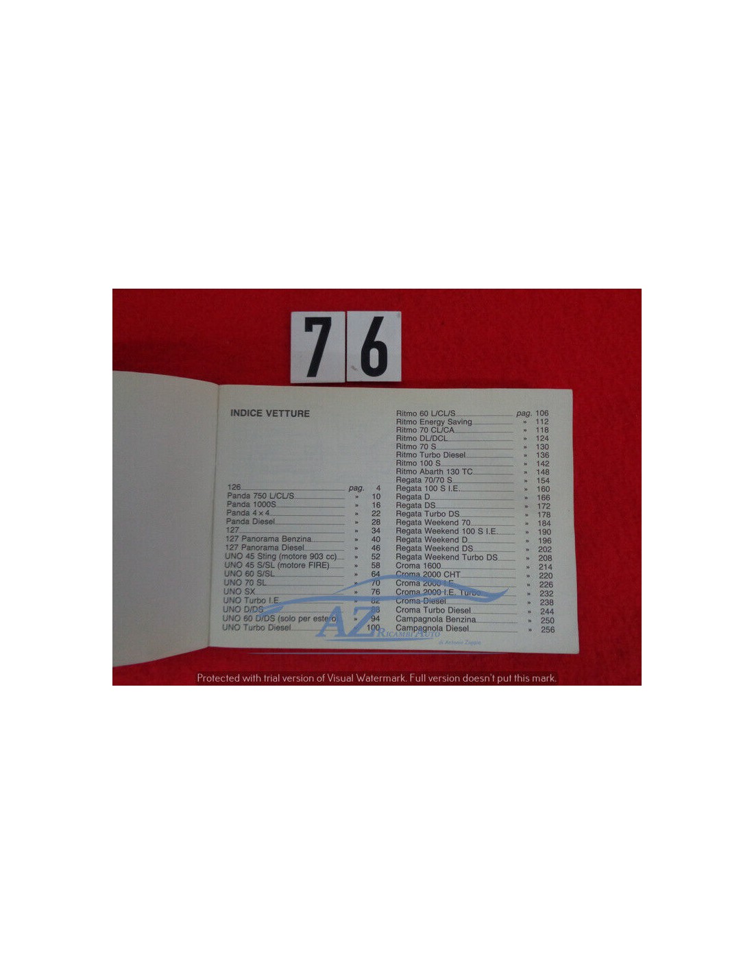 Manuale dati caratteristici vetture Fiat 1986